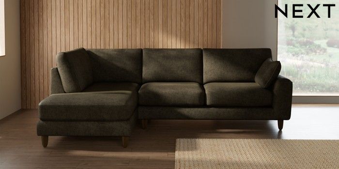 7.2.10 Campbell Medium Corner Chaise - Left Hand Plush Chenille Moss Green High Leg - Mid | Made Click here to use our website with more accessibility support, for example screen readers