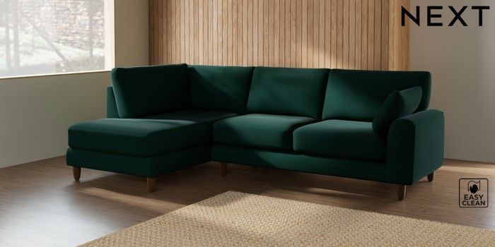 7.2.10 Campbell Medium Corner Chaise - Left Hand Plush Velvet Easy Clean Bottle Green High Leg - Mid | Made Click here to use our website with more accessibility support, for example screen readers