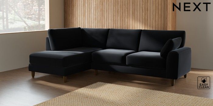 7.2.10 Campbell Medium Corner Chaise - Left Hand Plush Velvet Easy Clean Charcoal Grey High Leg - Mid | Made Click here to use our website with more accessibility support, for example screen readers