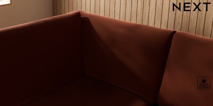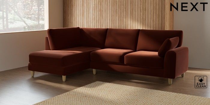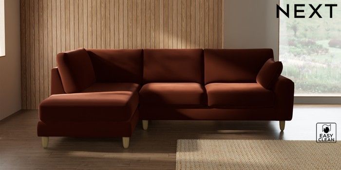7.2.10 Campbell Medium Corner Chaise - Left Hand Plush Velvet Easy Clean Ginger Orange High Leg - Light | Made Click here to use our website with more accessibility support, for example screen readers
