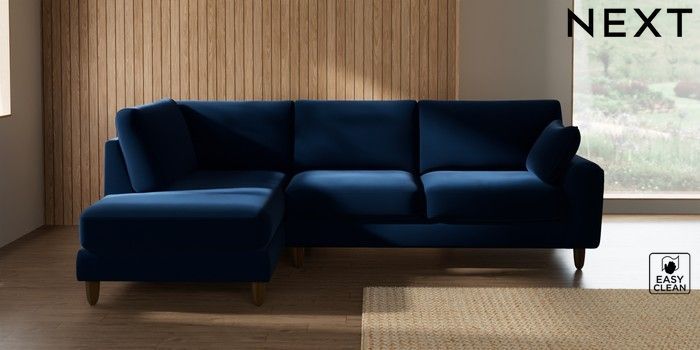 7.2.10 Campbell Medium Corner Chaise - Left Hand Plush Velvet Easy Clean Navy Blue High Leg - Mid | Made Click here to use our website with more accessibility support, for example screen readers