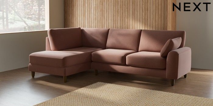 7.2.10 Campbell Medium Corner Chaise - Left Hand Relaxed Linen Look Light Rust Brown High Leg - Mid | Made Click here to use our website with more accessibility support, for example screen readers