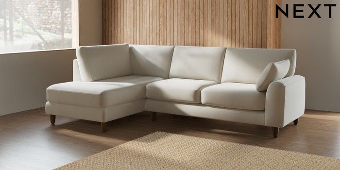 7.2.10 Campbell Medium Corner Chaise - Left Hand Relaxed Linen Look Oyster High Leg - Mid | Made Click here to use our website with more accessibility support, for example screen readers