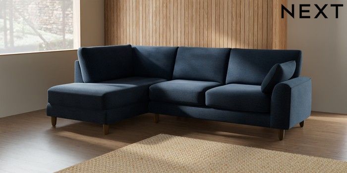 7.2.10 Campbell Medium Corner Chaise - Left Hand Ripple Chenille Dark Blue High Leg - Mid | Made Click here to use our website with more accessibility support, for example screen readers