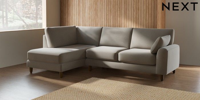 7.2.10 Campbell Medium Corner Chaise - Left Hand Ripple Chenille Light Natural High Leg - Mid | Made Click here to use our website with more accessibility support, for example screen readers