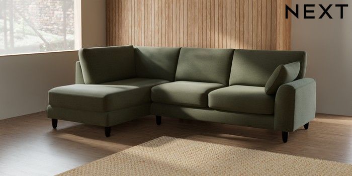 7.2.10 Campbell Medium Corner Chaise - Left Hand Ripple Chenille Mid Moss Green High Leg - Dark | Made Click here to use our website with more accessibility support, for example screen readers