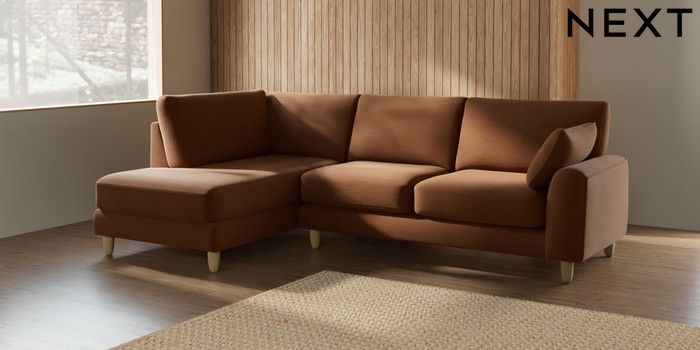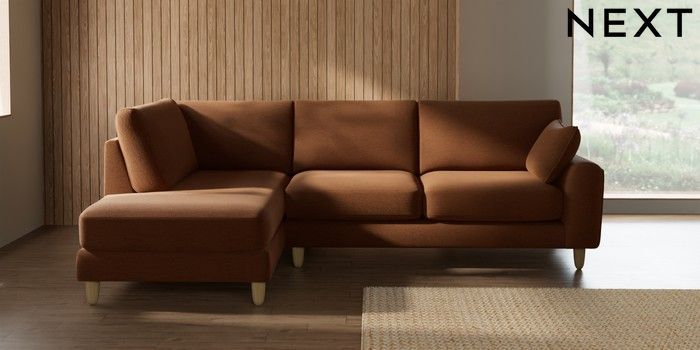 7.2.10 Campbell Medium Corner Chaise - Left Hand Ripple Chenille Mid Rust Brown High Leg - Light | Made Click here to use our website with more accessibility support, for example screen readers