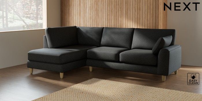 7.2.10 Campbell Medium Corner Chaise - Left Hand Tweedy Blend Easy Clean Charcoal Grey High Leg - Light | Made Click here to use our website with more accessibility support, for example screen readers