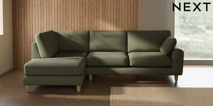 7.2.10 Campbell Medium Corner Chaise - Left Hand Tweedy Chenille Mid Moss Green High Leg - Light | Made Click here to use our website with more accessibility support, for example screen readers