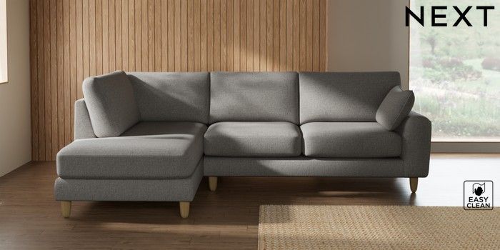 7.2.10 Campbell Medium Corner Chaise - Left Hand Woven Chenille Easy Clean Light Grey High Leg - Light | Made Click here to use our website with more accessibility support, for example screen readers