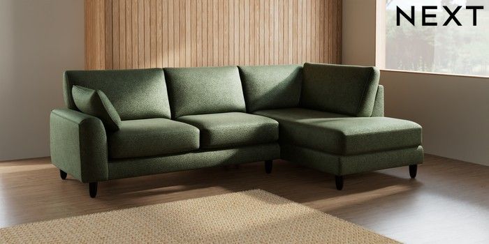 7.2.10 Campbell Medium Corner Chaise - Right Hand Boucle Chenille Dark Moss Green High Leg - Dark | Made Click here to use our website with more accessibility support, for example screen readers