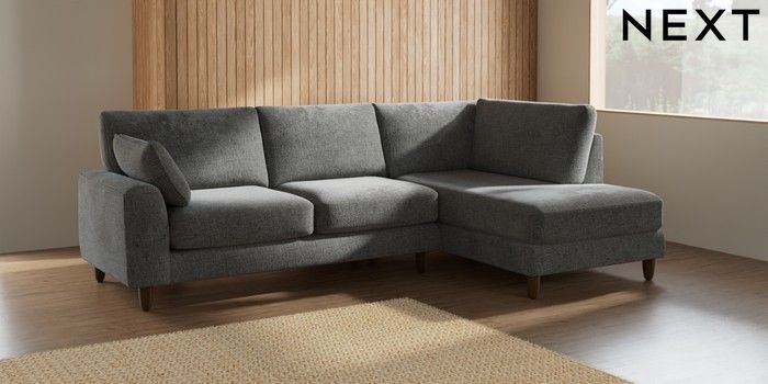7.2.10 Campbell Medium Corner Chaise - Right Hand Chunky Chenille Dark Grey High Leg - Mid | Made Click here to use our website with more accessibility support, for example screen readers