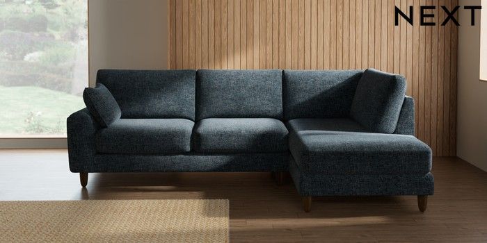 7.2.10 Campbell Medium Corner Chaise - Right Hand Chunky Chenille Dark Navy Blue High Leg - Mid | Made Click here to use our website with more accessibility support, for example screen readers