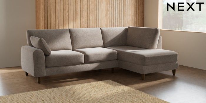 7.2.10 Campbell Medium Corner Chaise - Right Hand Chunky Chenille Light Dove High Leg - Mid | Made Click here to use our website with more accessibility support, for example screen readers