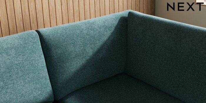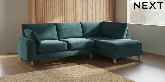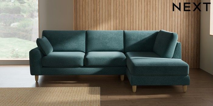 7.2.10 Campbell Medium Corner Chaise - Right Hand Chunky Chenille Mid Teal Green High Leg - Light | Made Click here to use our website with more accessibility support, for example screen readers