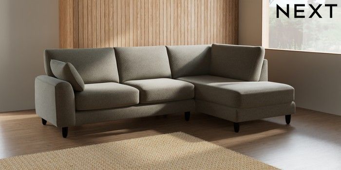 7.2.10 Campbell Medium Corner Chaise - Right Hand Chunky Marl Light Olive Green High Leg - Dark | Made Click here to use our website with more accessibility support, for example screen readers