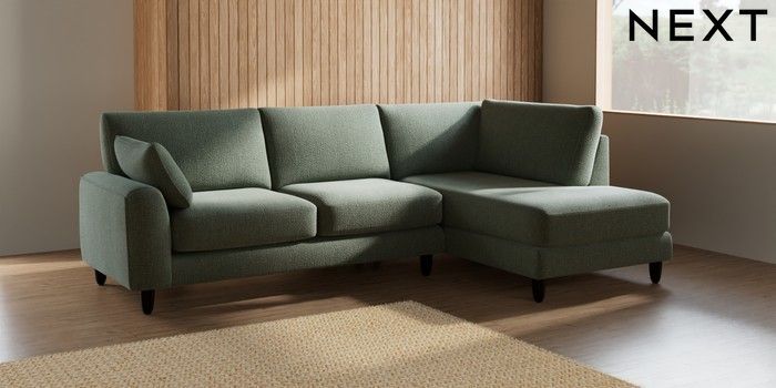 7.2.10 Campbell Medium Corner Chaise - Right Hand Chunky Texture Mid Forest Green High Leg - Dark | Made Click here to use our website with more accessibility support, for example screen readers