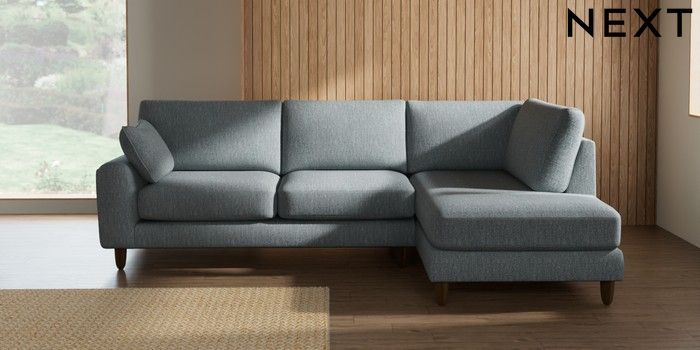 7.2.10 Campbell Medium Corner Chaise - Right Hand Chunky Weave Mid Blue High Leg - Mid | Made Click here to use our website with more accessibility support, for example screen readers