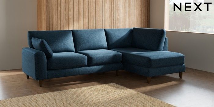 7.2.10 Campbell Medium Corner Chaise - Right Hand Cotswold Chenille Dark Blue High Leg - Mid | Made Click here to use our website with more accessibility support, for example screen readers