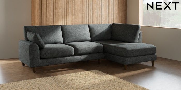7.2.10 Campbell Medium Corner Chaise - Right Hand Cotswold Chenille Dark Grey High Leg - Mid | Made Click here to use our website with more accessibility support, for example screen readers