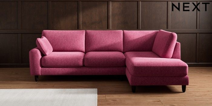 7.2.10 Campbell Medium Corner Chaise - Right Hand Cotswold Chenille Dark Raspberry Pink High Leg - Dark | Made Click here to use our website with more accessibility support, for example screen readers