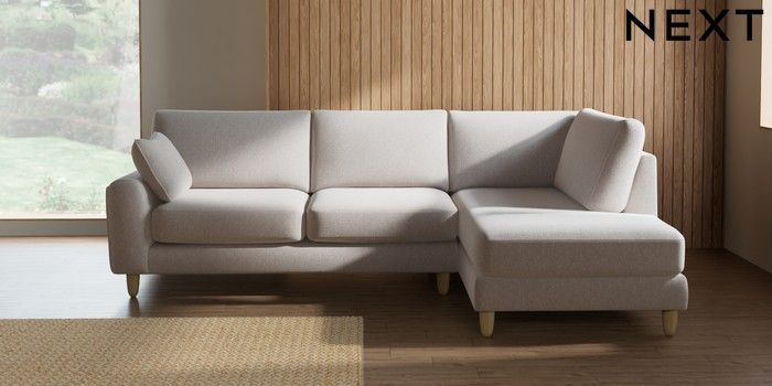 7.2.10 Campbell Medium Corner Chaise - Right Hand Cotswold Chenille Oyster High Leg - Light | Made Click here to use our website with more accessibility support, for example screen readers