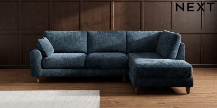 7.2.10 Campbell Medium Corner Chaise - Right Hand Distressed Velour Midnight Blue High Leg - Mid | Made Click here to use our website with more accessibility support, for example screen readers