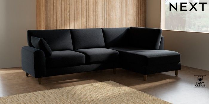 7.2.10 Campbell Medium Corner Chaise - Right Hand Fine Chenille Easy Clean Black High Leg - Mid | Made Click here to use our website with more accessibility support, for example screen readers