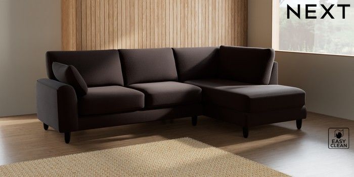 7.2.10 Campbell Medium Corner Chaise - Right Hand Fine Chenille Easy Clean Chocolate Brown High Leg - Dark | Made Click here to use our website with more accessibility support, for example screen readers