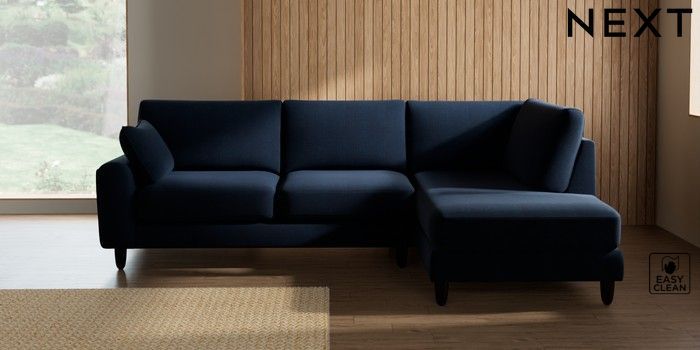 7.2.10 Campbell Medium Corner Chaise - Right Hand Fine Chenille Easy Clean Dark Navy Blue High Leg - Dark | Made Click here to use our website with more accessibility support, for example screen readers