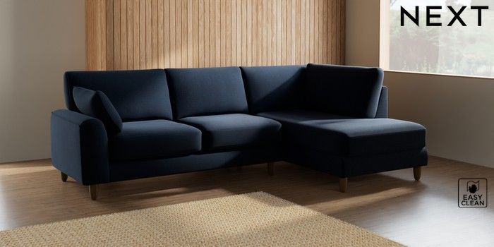 7.2.10 Campbell Medium Corner Chaise - Right Hand Fine Chenille Easy Clean Dark Navy Blue High Leg - Mid | Made Click here to use our website with more accessibility support, for example screen readers