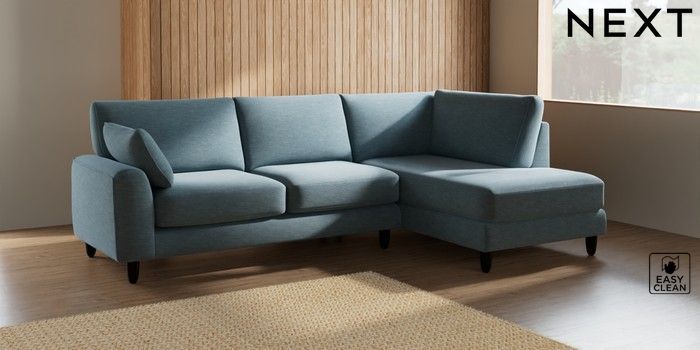 7.2.10 Campbell Medium Corner Chaise - Right Hand Fine Chenille Easy Clean Mid Blue High Leg - Dark | Made Click here to use our website with more accessibility support, for example screen readers