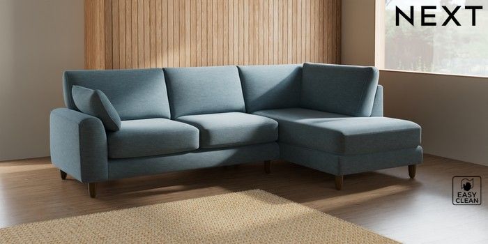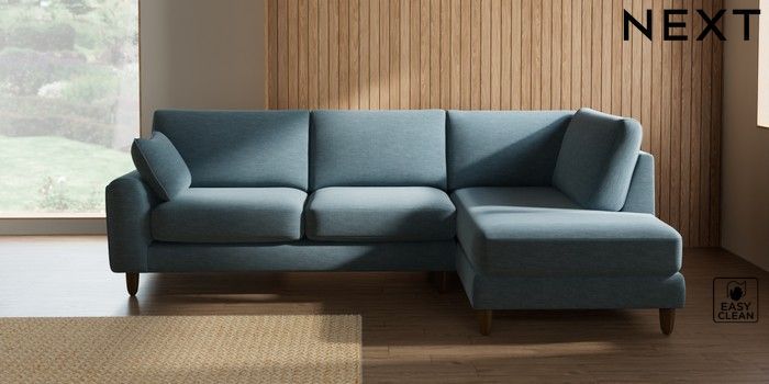 7.2.10 Campbell Medium Corner Chaise - Right Hand Fine Chenille Easy Clean Mid Blue High Leg - Mid | Made Click here to use our website with more accessibility support, for example screen readers