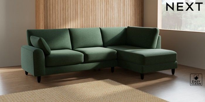 7.2.10 Campbell Medium Corner Chaise - Right Hand Fine Chenille Easy Clean Mid Khaki Green High Leg - Dark | Made Click here to use our website with more accessibility support, for example screen readers
