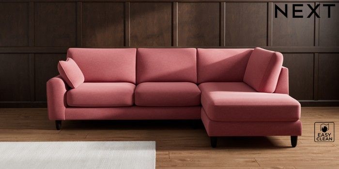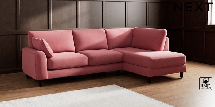 7.2.10 Campbell Medium Corner Chaise - Right Hand Fine Chenille Easy Clean Mid Pink High Leg - Dark | Made Click here to use our website with more accessibility support, for example screen readers