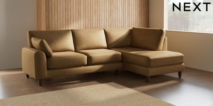 7.2.10 Campbell Medium Corner Chaise - Right Hand Luxe Chenille Honey Yellow High Leg - Mid | Made Click here to use our website with more accessibility support, for example screen readers