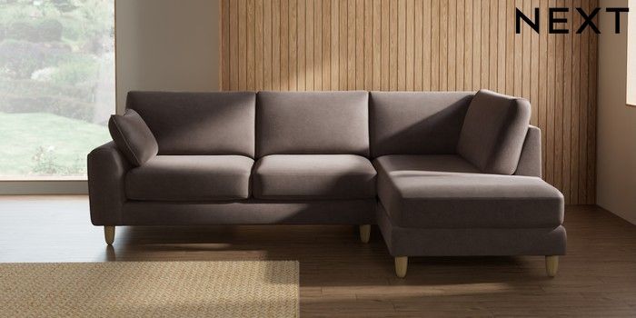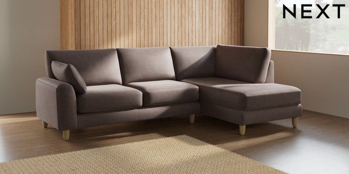 7.2.10 Campbell Medium Corner Chaise - Right Hand Luxe Chenille Mink Brown High Leg - Light | Made Click here to use our website with more accessibility support, for example screen readers