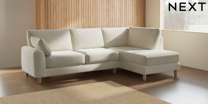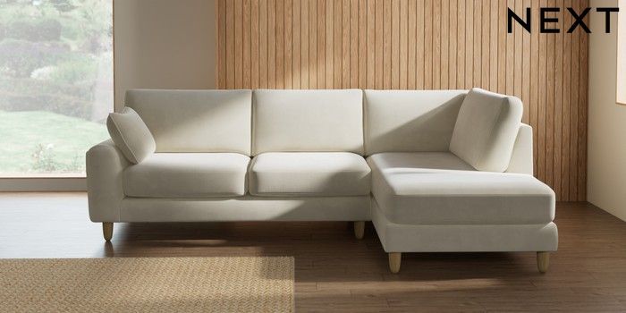 7.2.10 Campbell Medium Corner Chaise - Right Hand Luxe Chenille Oyster High Leg - Light | Made Click here to use our website with more accessibility support, for example screen readers