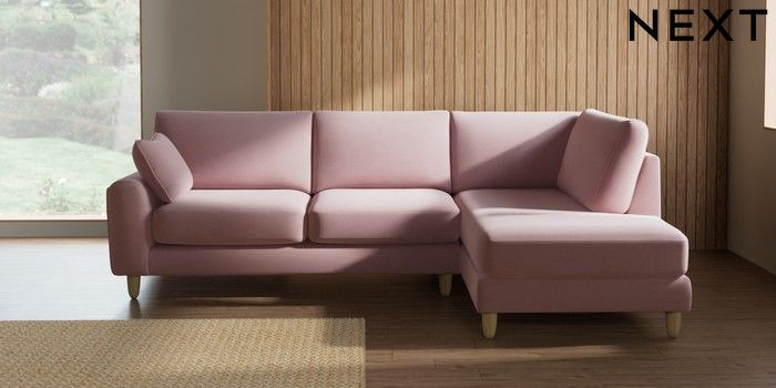 7.2.10 Campbell Medium Corner Chaise - Right Hand Natural Mix Light Rose Pink High Leg - Light | Made Click here to use our website with more accessibility support, for example screen readers
