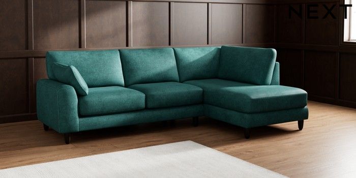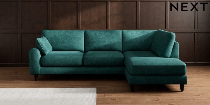 7.2.10 Campbell Medium Corner Chaise - Right Hand Plush Chenille Dark Teal Green High Leg - Dark | Made Click here to use our website with more accessibility support, for example screen readers