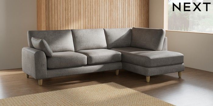 7.2.10 Campbell Medium Corner Chaise - Right Hand Plush Chenille Light Grey High Leg - Light | Made Click here to use our website with more accessibility support, for example screen readers