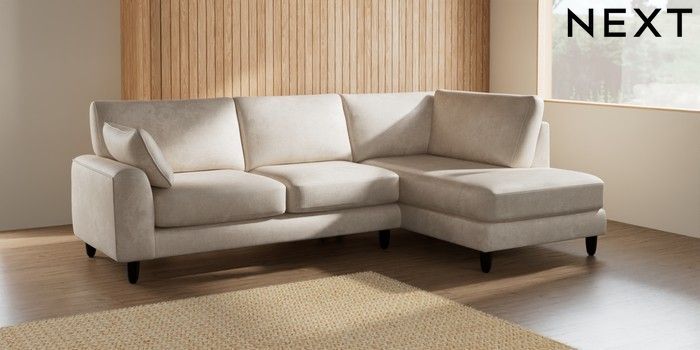 7.2.10 Campbell Medium Corner Chaise - Right Hand Plush Chenille Oyster High Leg - Dark | Made Click here to use our website with more accessibility support, for example screen readers