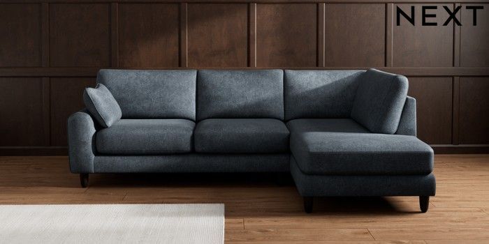 7.2.10 Campbell Medium Corner Chaise - Right Hand Plush Chenille Slate Blue High Leg - Dark | Made Click here to use our website with more accessibility support, for example screen readers