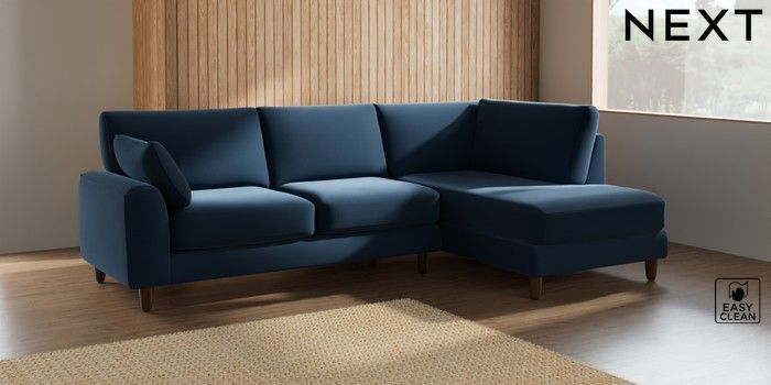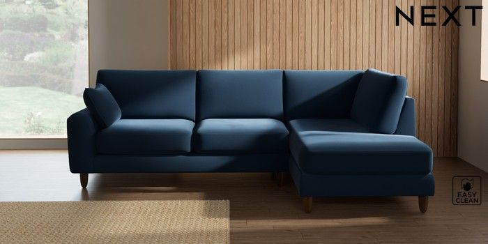 7.2.10 Campbell Medium Corner Chaise - Right Hand Plush Velvet Easy Clean Airforce Blue High Leg - Mid | Made Click here to use our website with more accessibility support, for example screen readers
