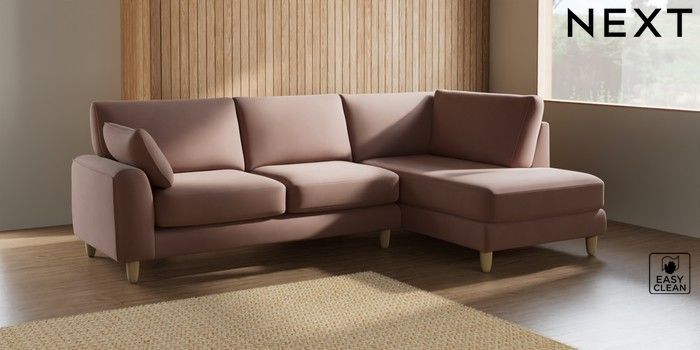 7.2.10 Campbell Medium Corner Chaise - Right Hand Plush Velvet Easy Clean Mid Natural High Leg - Light | Made Click here to use our website with more accessibility support, for example screen readers