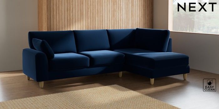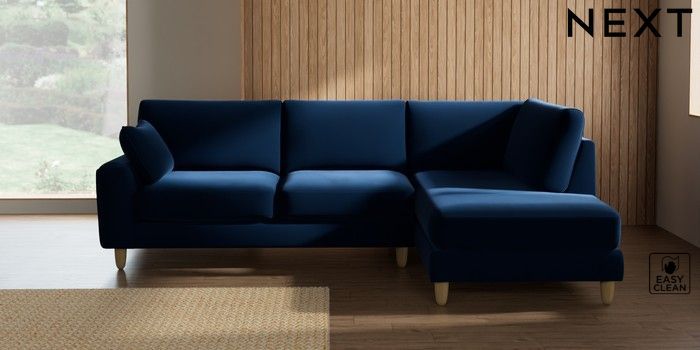 7.2.10 Campbell Medium Corner Chaise - Right Hand Plush Velvet Easy Clean Navy Blue High Leg - Light | Made Click here to use our website with more accessibility support, for example screen readers