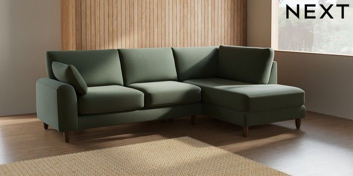 7.2.10 Campbell Medium Corner Chaise - Right Hand Relaxed Linen Look Dark Green High Leg - Mid | Made Click here to use our website with more accessibility support, for example screen readers