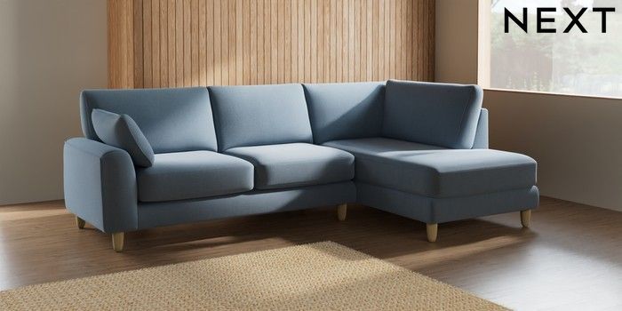 7.2.10 Campbell Medium Corner Chaise - Right Hand Relaxed Linen Look Mid Blue High Leg - Light | Made Click here to use our website with more accessibility support, for example screen readers