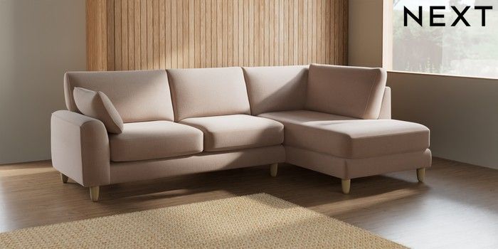 7.2.10 Campbell Medium Corner Chaise - Right Hand Relaxed Linen Look Mid Natural High Leg - Light | Made Click here to use our website with more accessibility support, for example screen readers