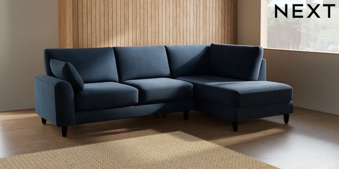 7.2.10 Campbell Medium Corner Chaise - Right Hand Ripple Chenille Dark Blue High Leg - Dark | Made Click here to use our website with more accessibility support, for example screen readers